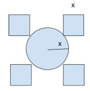Humberto es un organizador de eventos, necesita realizar una alfombra de flores con forma de cuatro cuadrados y un círculo como se ve a continuación.